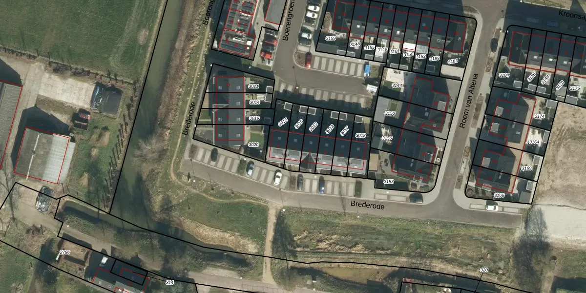 Het perceel waarop Brederode 5 staat heeft een oppervlakte van 123 m². Dit is een middelgroot perceel. De perceeloppervlakte wordt geregistreerd door het Kadaster. Gedetailleerde informatie over de maten van dit perceel kunt u vinden in het rapport Kadastrale kaart met maatvoering van Brederode 5.