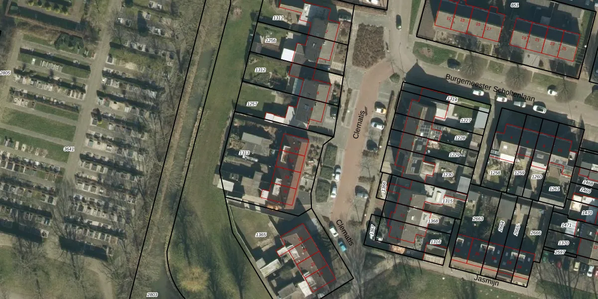 Het perceel waarop Clematis 10 staat heeft een oppervlakte van 877 m². Dit is een groot perceel. De perceeloppervlakte wordt geregistreerd door het Kadaster. Gedetailleerde informatie over de maten van dit perceel kunt u vinden in het rapport Kadastrale kaart met maatvoering van Clematis 10.