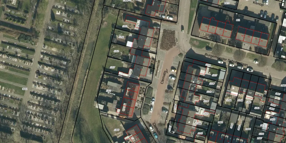 Gebruik de zoekbalk of klik op een perceel voor informatie over de adressen binnen dit perceel.