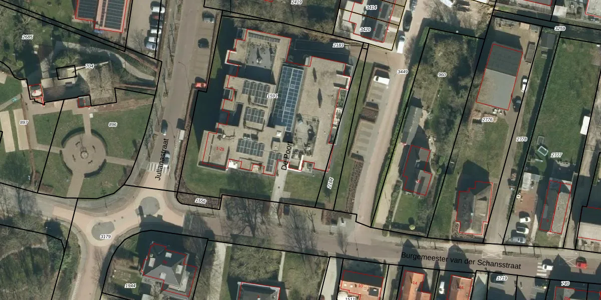 Het perceel waarop De Poort 11 staat heeft een oppervlakte van 2772 m². Dit is een zeer groot perceel. De perceeloppervlakte wordt geregistreerd door het Kadaster. Gedetailleerde informatie over de maten van dit perceel kunt u vinden in het rapport Kadastrale kaart met maatvoering van De Poort 11.