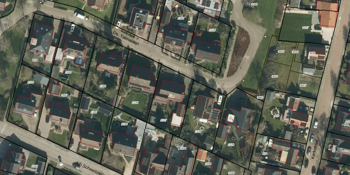 Gebruik de zoekbalk of klik op een perceel voor informatie over de adressen binnen dit perceel.