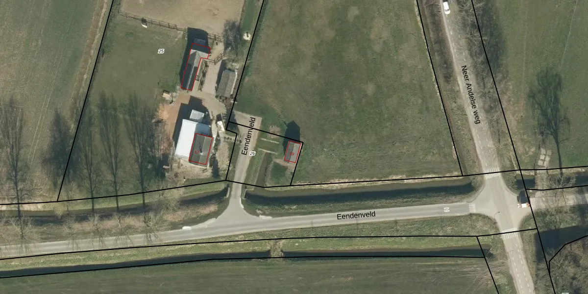 Eendenveld 19 is gelegen op kadastraal perceel WDC00I26. Deze kadastrale aanduiding is uniek en wordt gebruikt door het Kadaster om eigendomsrechten en andere zakelijke rechten vast te leggen. Het perceel maakt onderdeel uit van de kadastrale gemeente Woudrichem.