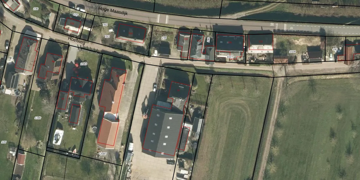 Hoefweg 14 is gelegen op kadastraal perceel WDC00I109. Deze kadastrale aanduiding is uniek en wordt gebruikt door het Kadaster om eigendomsrechten en andere zakelijke rechten vast te leggen. Het perceel maakt onderdeel uit van de kadastrale gemeente Woudrichem.