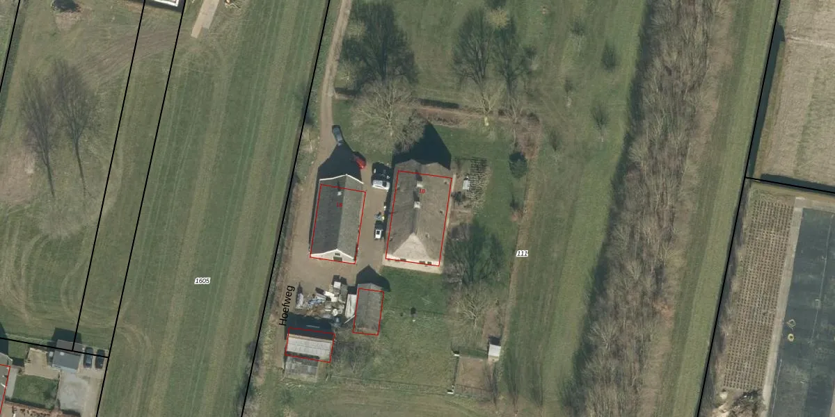 Hoefweg 18 is gelegen op kadastraal perceel WDC00I111. Deze kadastrale aanduiding is uniek en wordt gebruikt door het Kadaster om eigendomsrechten en andere zakelijke rechten vast te leggen. Het perceel maakt onderdeel uit van de kadastrale gemeente Woudrichem.