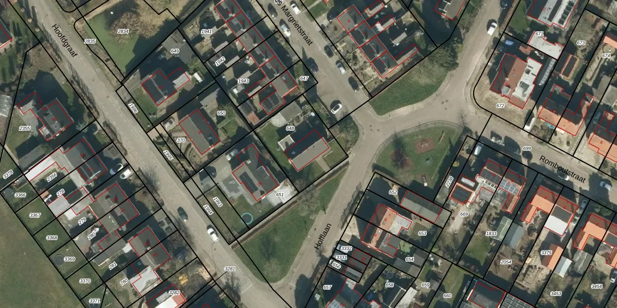 Het perceel waarop Hofflaan 1 staat heeft een oppervlakte van 501 m². Dit is een groot perceel. De perceeloppervlakte wordt geregistreerd door het Kadaster. Gedetailleerde informatie over de maten van dit perceel kunt u vinden in het rapport Kadastrale kaart met maatvoering van Hofflaan 1.