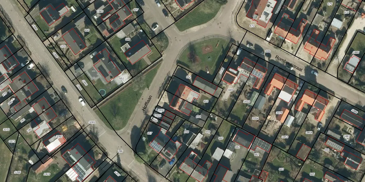 Hofflaan 6 is gelegen op kadastraal perceel WDC00I653. Deze kadastrale aanduiding is uniek en wordt gebruikt door het Kadaster om eigendomsrechten en andere zakelijke rechten vast te leggen. Het perceel maakt onderdeel uit van de kadastrale gemeente Woudrichem.