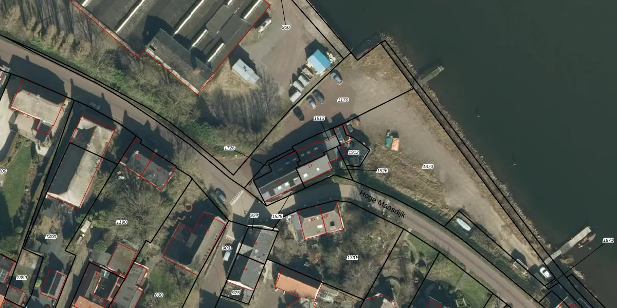 Het perceel waarop Hoge Maasdijk 13 staat heeft een oppervlakte van 78 m². Dit is een klein perceel. De perceeloppervlakte wordt geregistreerd door het Kadaster. Gedetailleerde informatie over de maten van dit perceel kunt u vinden in het rapport Kadastrale kaart met maatvoering van Hoge Maasdijk 13.