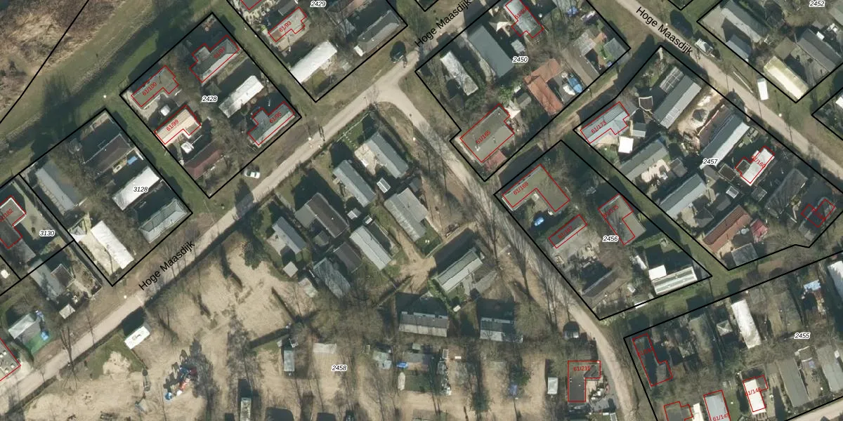 Hoge Maasdijk 61-243 is gelegen op kadastraal perceel WDC00I2458. Deze kadastrale aanduiding is uniek en wordt gebruikt door het Kadaster om eigendomsrechten en andere zakelijke rechten vast te leggen. Het perceel maakt onderdeel uit van de kadastrale gemeente Woudrichem.