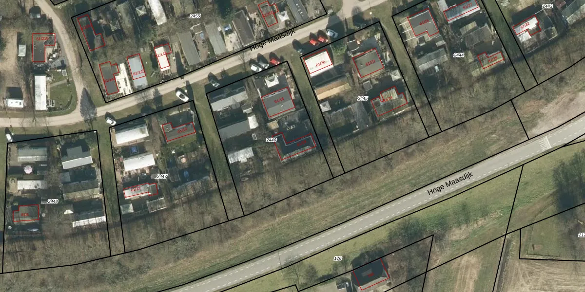 Hoge Maasdijk 61-19 is gelegen op kadastraal perceel WDC00I2446. Deze kadastrale aanduiding is uniek en wordt gebruikt door het Kadaster om eigendomsrechten en andere zakelijke rechten vast te leggen. Het perceel maakt onderdeel uit van de kadastrale gemeente Woudrichem.
