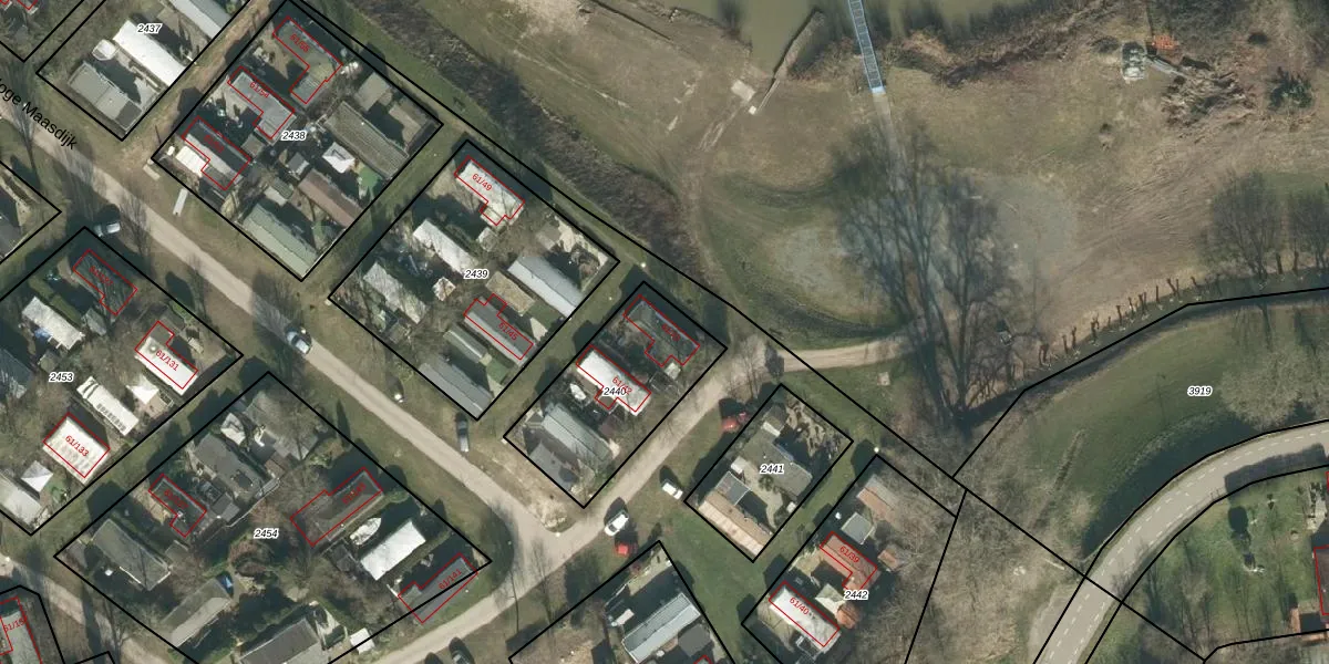 Hoge Maasdijk 61-43 is gelegen op kadastraal perceel WDC00I2440. Deze kadastrale aanduiding is uniek en wordt gebruikt door het Kadaster om eigendomsrechten en andere zakelijke rechten vast te leggen. Het perceel maakt onderdeel uit van de kadastrale gemeente Woudrichem.