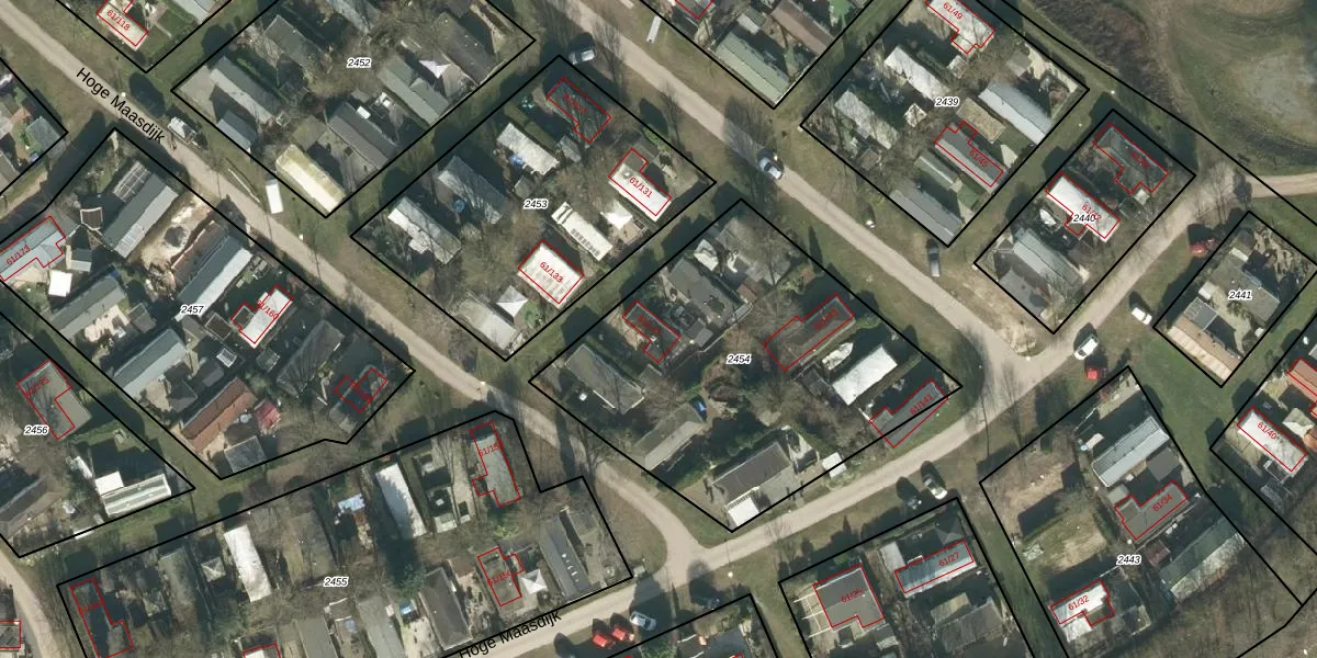 Hoge Maasdijk 61-137 is gelegen op kadastraal perceel WDC00I2454. Deze kadastrale aanduiding is uniek en wordt gebruikt door het Kadaster om eigendomsrechten en andere zakelijke rechten vast te leggen. Het perceel maakt onderdeel uit van de kadastrale gemeente Woudrichem.