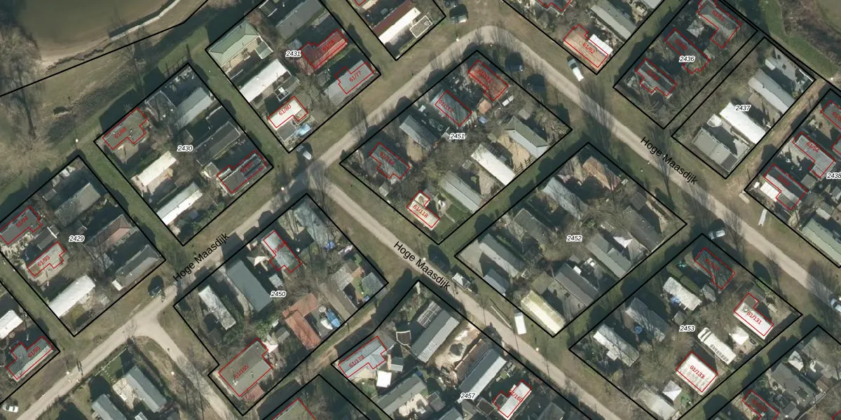 Hoge Maasdijk 61-118 is gelegen op kadastraal perceel WDC00I2451. Deze kadastrale aanduiding is uniek en wordt gebruikt door het Kadaster om eigendomsrechten en andere zakelijke rechten vast te leggen. Het perceel maakt onderdeel uit van de kadastrale gemeente Woudrichem.