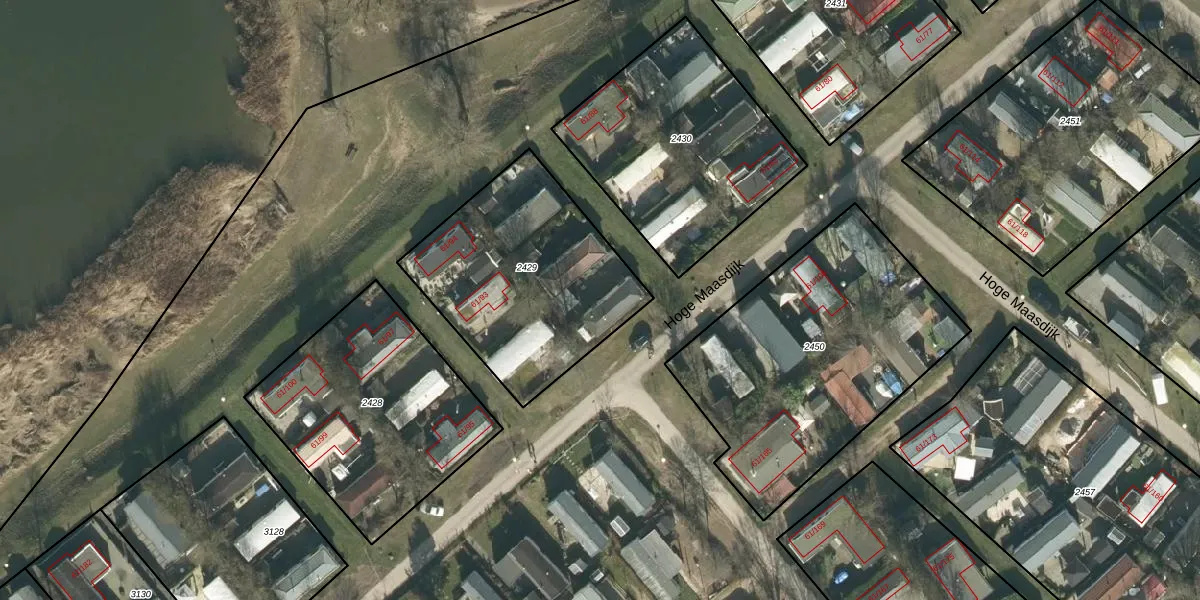 Hoge Maasdijk 61-89 is gelegen op kadastraal perceel WDC00I2429. Deze kadastrale aanduiding is uniek en wordt gebruikt door het Kadaster om eigendomsrechten en andere zakelijke rechten vast te leggen. Het perceel maakt onderdeel uit van de kadastrale gemeente Woudrichem.