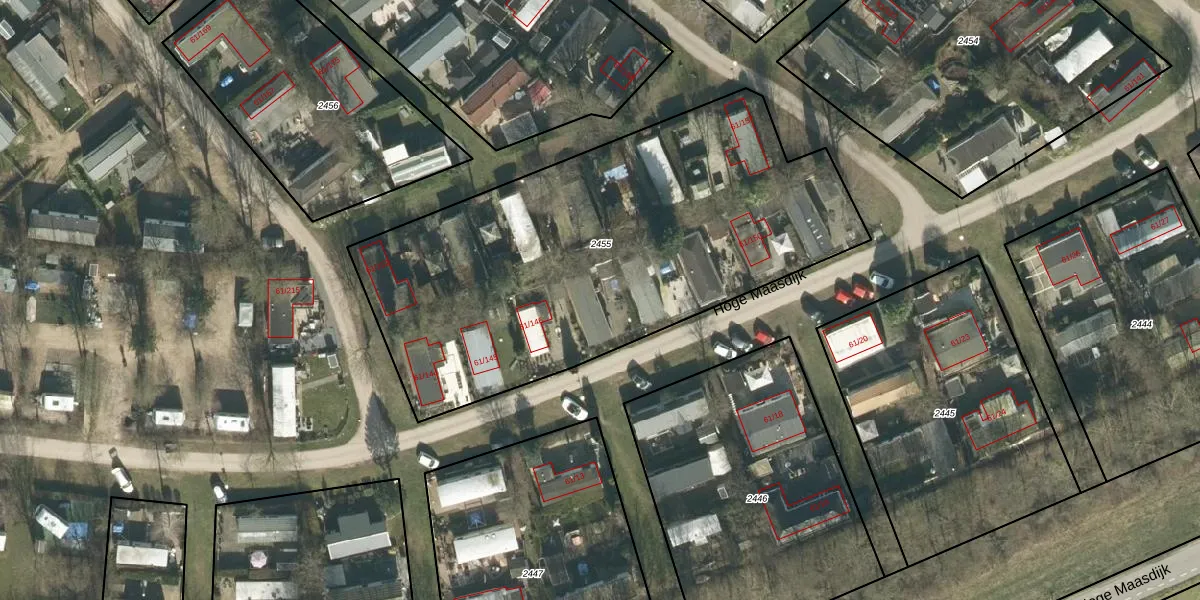 Hoge Maasdijk 61-147 is gelegen op kadastraal perceel WDC00I2455. Deze kadastrale aanduiding is uniek en wordt gebruikt door het Kadaster om eigendomsrechten en andere zakelijke rechten vast te leggen. Het perceel maakt onderdeel uit van de kadastrale gemeente Woudrichem.