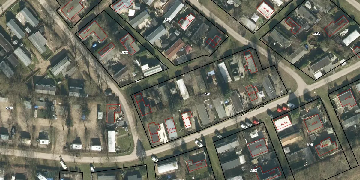 Het perceel waarop Hoge Maasdijk 61-154 staat heeft een oppervlakte van 2472 m². Dit is een zeer groot perceel. De perceeloppervlakte wordt geregistreerd door het Kadaster. Gedetailleerde informatie over de maten van dit perceel kunt u vinden in het rapport Kadastrale kaart met maatvoering van Hoge Maasdijk 61-154.