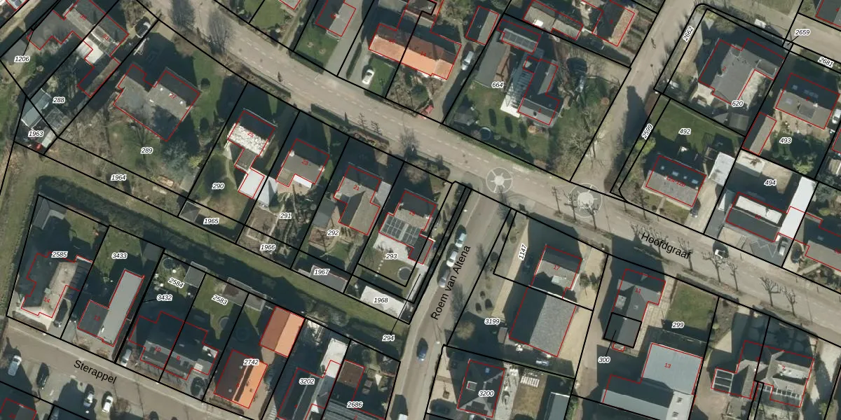 Het perceel waarop Hoofdgraaf 19 staat heeft een oppervlakte van 348 m². Dit is een groot perceel. De perceeloppervlakte wordt geregistreerd door het Kadaster. Gedetailleerde informatie over de maten van dit perceel kunt u vinden in het rapport Kadastrale kaart met maatvoering van Hoofdgraaf 19.