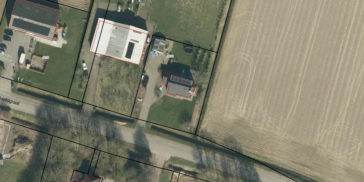 Hoofdgraaf 34 is gelegen op kadastraal perceel WDC00I1610. Deze kadastrale aanduiding is uniek en wordt gebruikt door het Kadaster om eigendomsrechten en andere zakelijke rechten vast te leggen. Het perceel maakt onderdeel uit van de kadastrale gemeente Woudrichem.