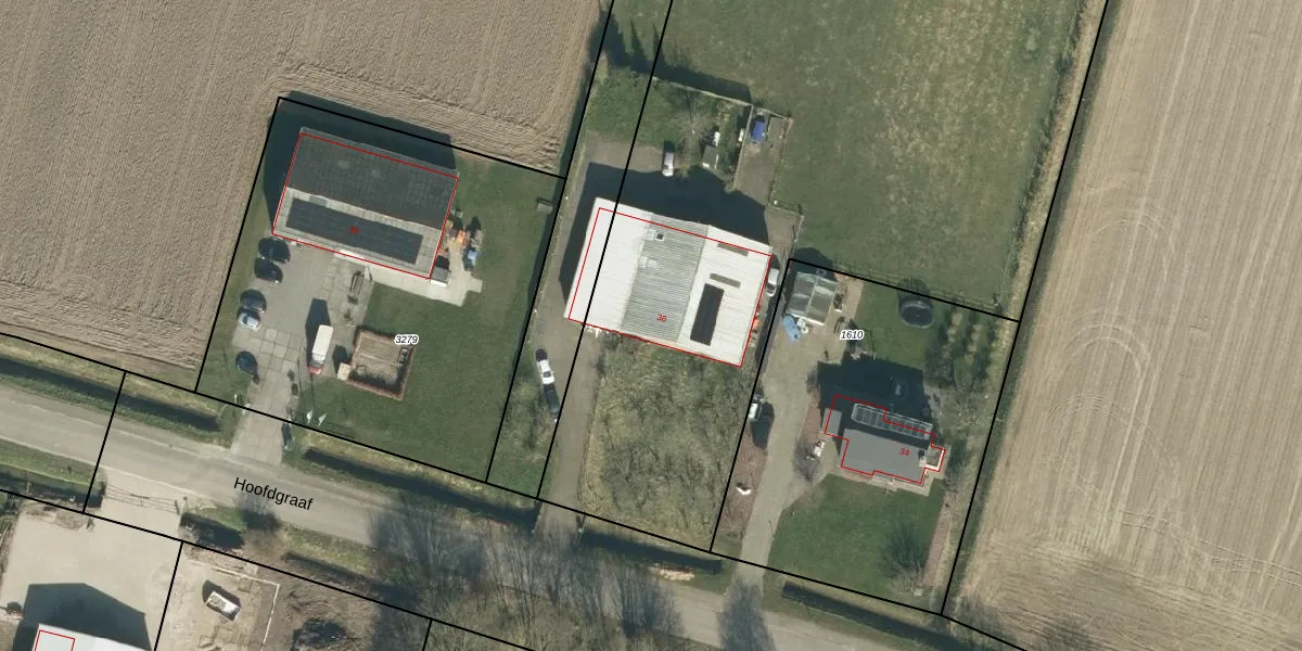 Het perceel waarop Hoofdgraaf 36 staat heeft een oppervlakte van 1,4 ha. Dit is een zeer groot perceel. De perceeloppervlakte wordt geregistreerd door het Kadaster. Gedetailleerde informatie over de maten van dit perceel kunt u vinden in het rapport Kadastrale kaart met maatvoering van Hoofdgraaf 36.