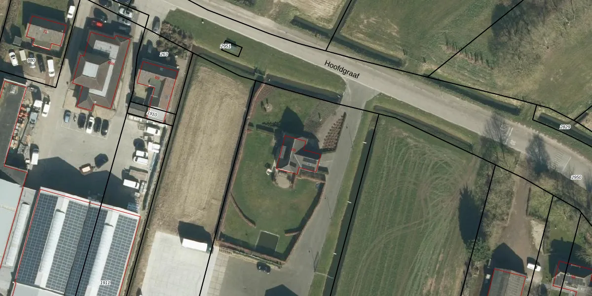 Hoofdgraaf 65 is gelegen op kadastraal perceel WDC00I266. Deze kadastrale aanduiding is uniek en wordt gebruikt door het Kadaster om eigendomsrechten en andere zakelijke rechten vast te leggen. Het perceel maakt onderdeel uit van de kadastrale gemeente Woudrichem.