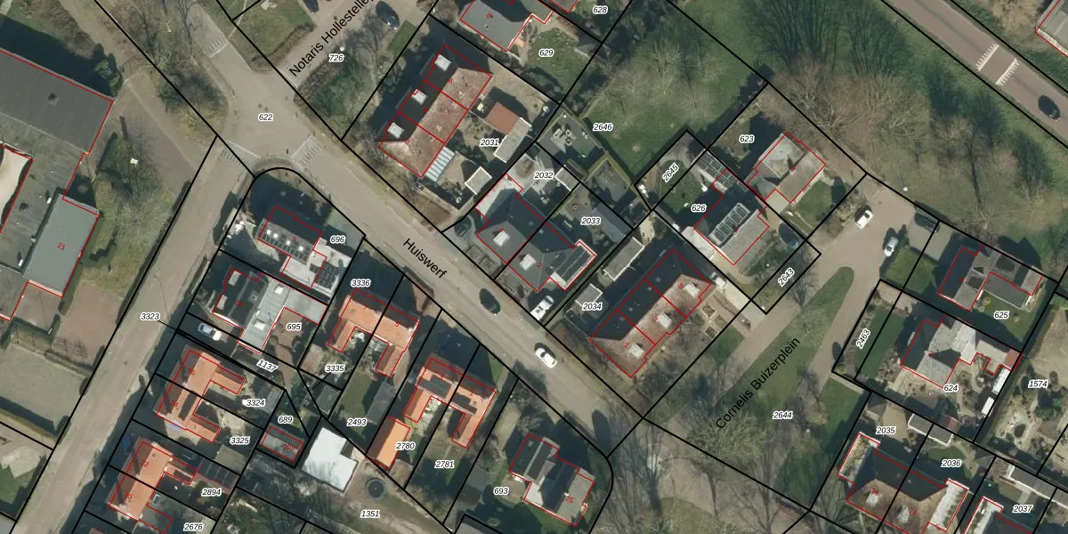Het perceel waarop Huiswerf 2 staat heeft een oppervlakte van 325 m². Dit is een groot perceel. De perceeloppervlakte wordt geregistreerd door het Kadaster. Gedetailleerde informatie over de maten van dit perceel kunt u vinden in het rapport Kadastrale kaart met maatvoering van Huiswerf 2.