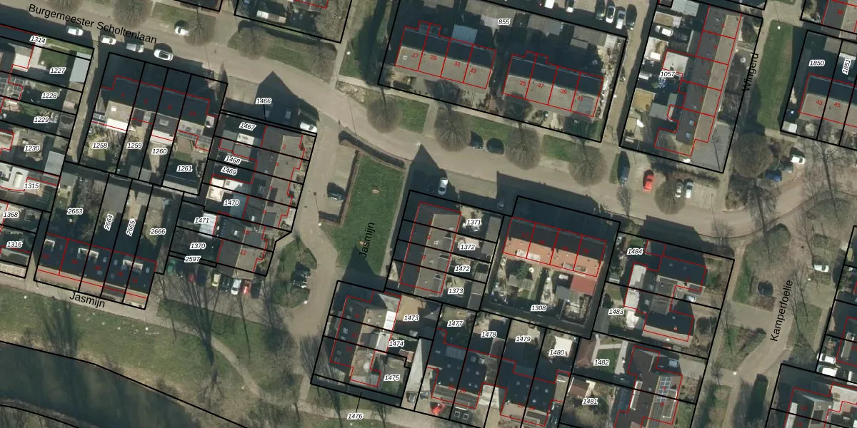 Jasmijn 1 is gelegen op kadastraal perceel WDC00I1371. Deze kadastrale aanduiding is uniek en wordt gebruikt door het Kadaster om eigendomsrechten en andere zakelijke rechten vast te leggen. Het perceel maakt onderdeel uit van de kadastrale gemeente Woudrichem.