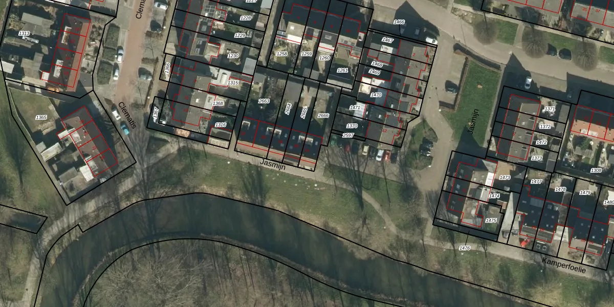Het perceel waarop Jasmijn 14 staat heeft een oppervlakte van 185 m². Dit is een middelgroot perceel. De perceeloppervlakte wordt geregistreerd door het Kadaster. Gedetailleerde informatie over de maten van dit perceel kunt u vinden in het rapport Kadastrale kaart met maatvoering van Jasmijn 14.