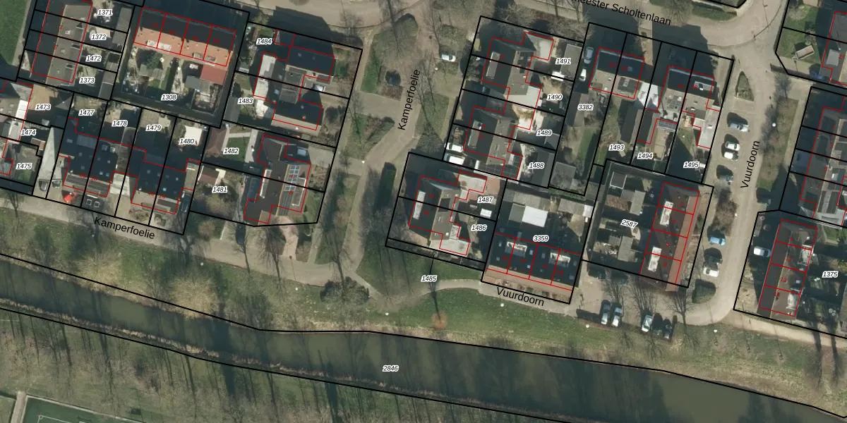 Kamperfoelie 15 is gelegen op kadastraal perceel WDC00I1486. Deze kadastrale aanduiding is uniek en wordt gebruikt door het Kadaster om eigendomsrechten en andere zakelijke rechten vast te leggen. Het perceel maakt onderdeel uit van de kadastrale gemeente Woudrichem.