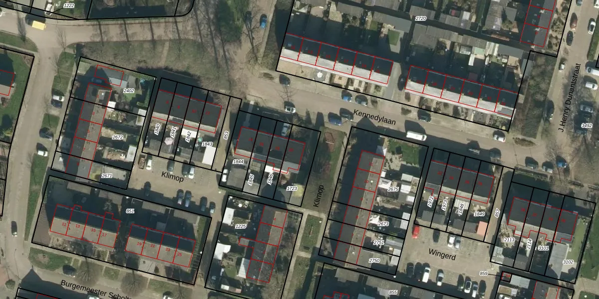 Gebruik de zoekbalk of klik op een perceel voor informatie over de adressen binnen dit perceel.