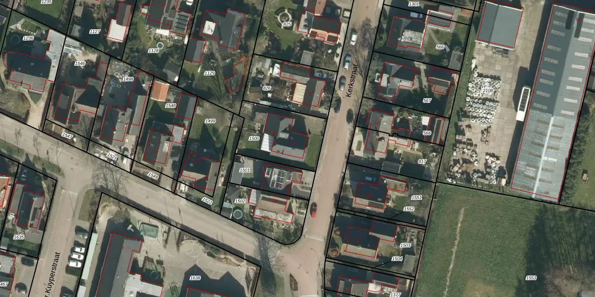 Het perceel waarop Kerkstraat 14 staat heeft een oppervlakte van 502 m². Dit is een groot perceel. De perceeloppervlakte wordt geregistreerd door het Kadaster. Gedetailleerde informatie over de maten van dit perceel kunt u vinden in het rapport Kadastrale kaart met maatvoering van Kerkstraat 14.