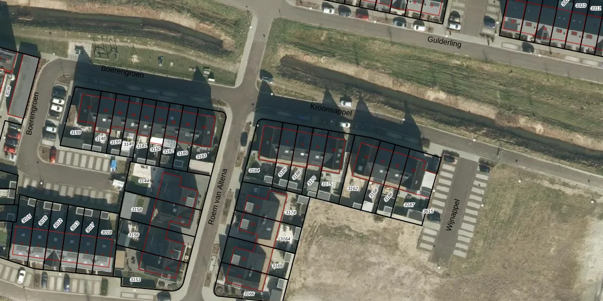 Gebruik de zoekbalk of klik op een perceel voor informatie over de adressen binnen dit perceel.