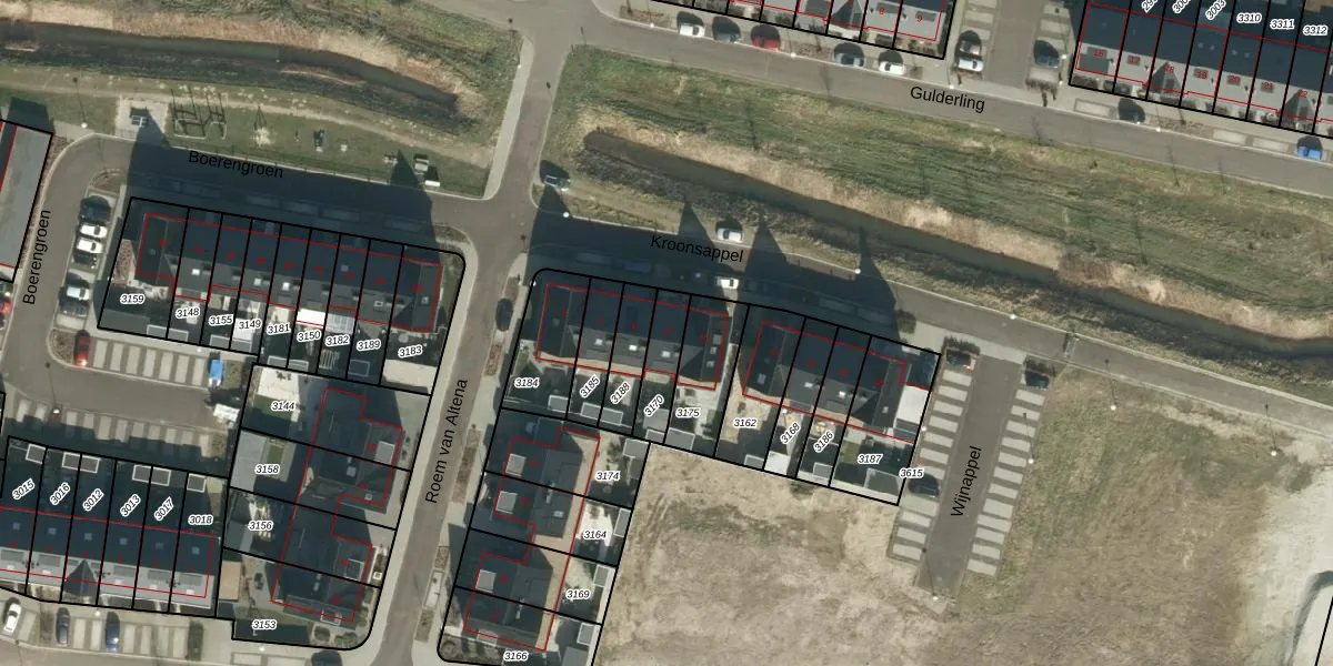 Gebruik de zoekbalk of klik op een perceel voor informatie over de adressen binnen dit perceel.