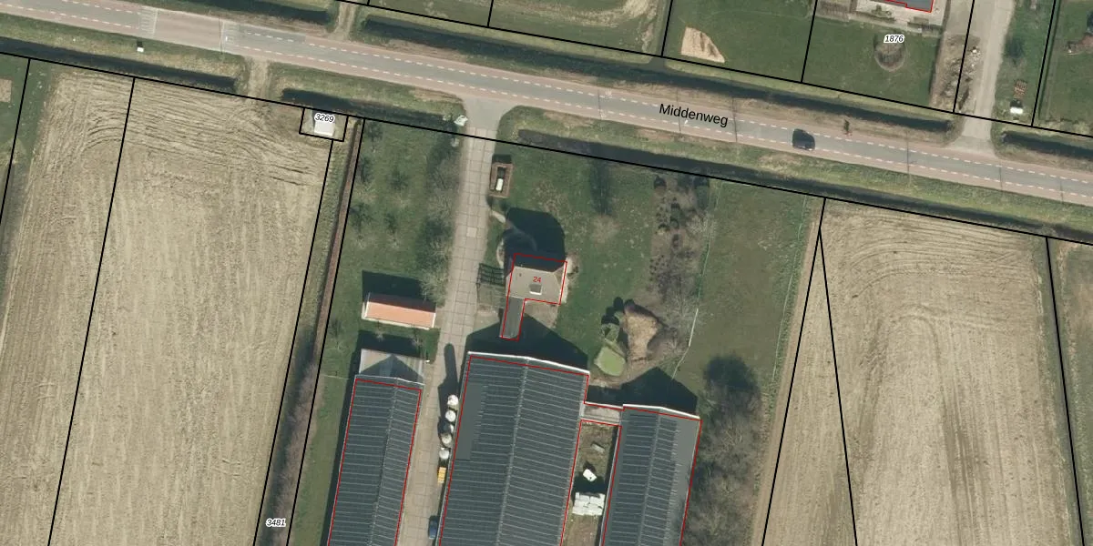 Middenweg 24 is gelegen op kadastraal perceel WDC00I3483. Deze kadastrale aanduiding is uniek en wordt gebruikt door het Kadaster om eigendomsrechten en andere zakelijke rechten vast te leggen. Het perceel maakt onderdeel uit van de kadastrale gemeente Woudrichem.