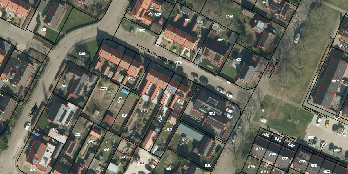 Prins Bernhardstraat 3 is gelegen op kadastraal perceel WDC00I2508. Deze kadastrale aanduiding is uniek en wordt gebruikt door het Kadaster om eigendomsrechten en andere zakelijke rechten vast te leggen. Het perceel maakt onderdeel uit van de kadastrale gemeente Woudrichem.