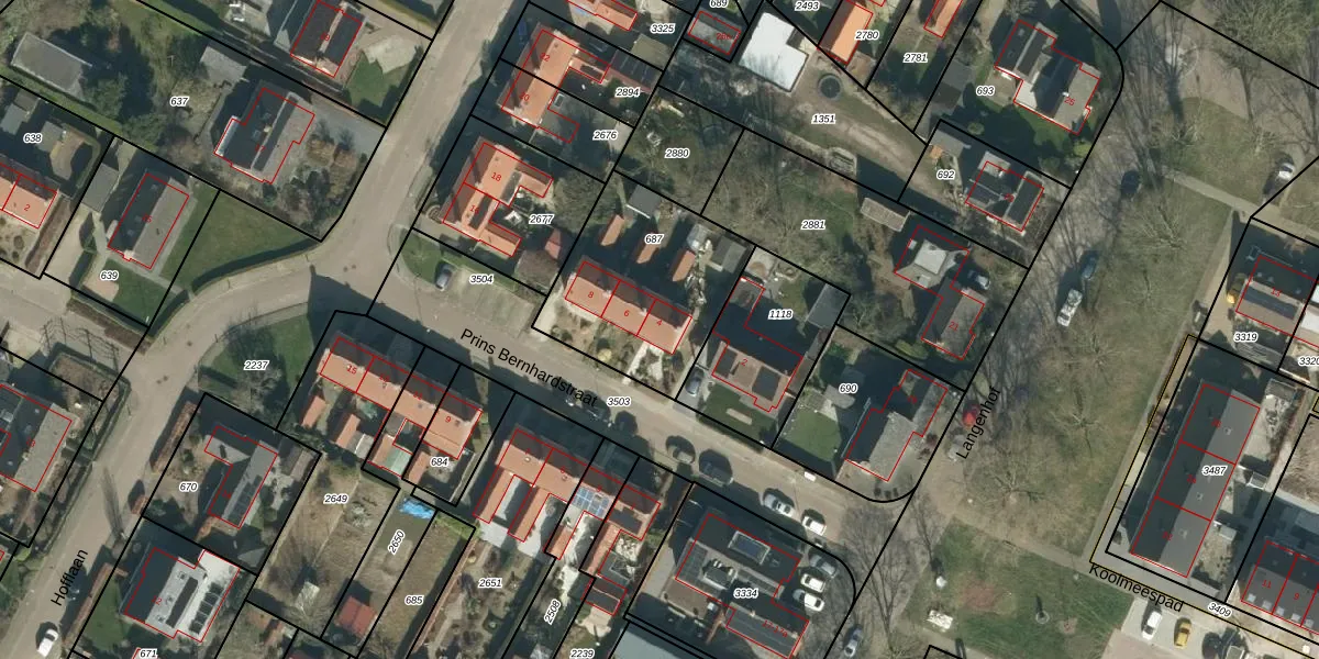 Het perceel waarop Prins Bernhardstraat 4 staat heeft een oppervlakte van 654 m². Dit is een groot perceel. De perceeloppervlakte wordt geregistreerd door het Kadaster. Gedetailleerde informatie over de maten van dit perceel kunt u vinden in het rapport Kadastrale kaart met maatvoering van Prins Bernhardstraat 4.