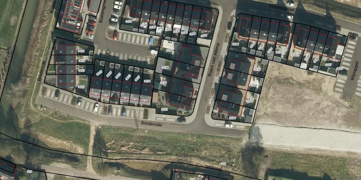 Gebruik de zoekbalk of klik op een perceel voor informatie over de adressen binnen dit perceel.