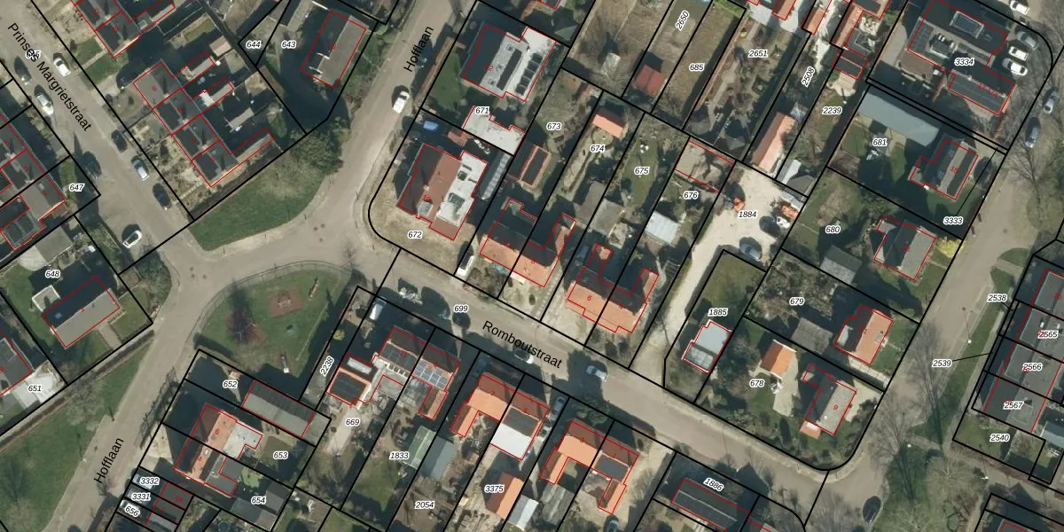 Het perceel waarop Romboutstraat 8 staat heeft een oppervlakte van 404 m². Dit is een groot perceel. De perceeloppervlakte wordt geregistreerd door het Kadaster. Gedetailleerde informatie over de maten van dit perceel kunt u vinden in het rapport Kadastrale kaart met maatvoering van Romboutstraat 8.