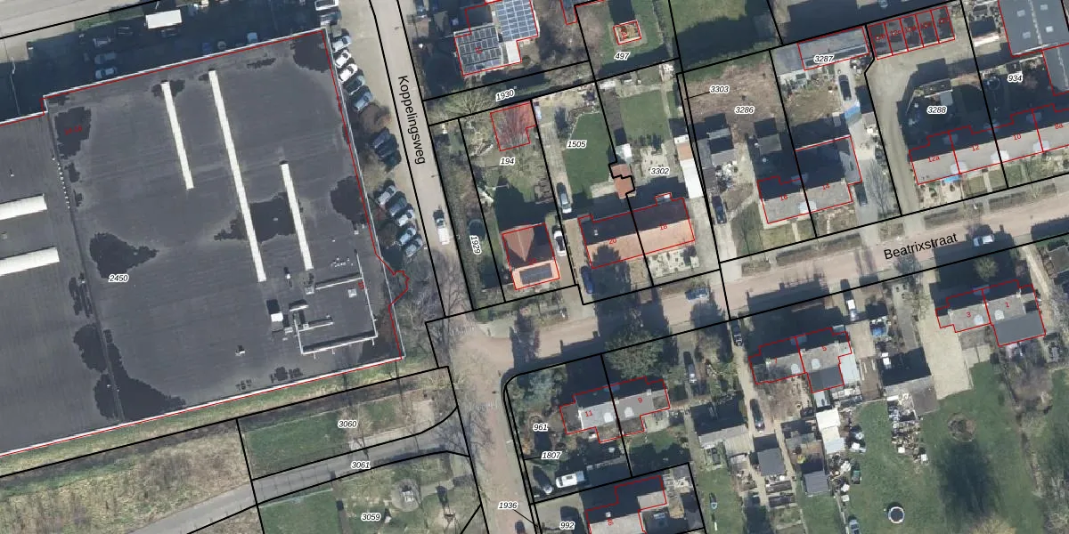 Het perceel waarop Beatrixstraat 22 staat heeft een oppervlakte van 490 m². Dit is een groot perceel. De perceeloppervlakte wordt geregistreerd door het Kadaster. Gedetailleerde informatie over de maten van dit perceel kunt u vinden in het rapport Kadastrale kaart met maatvoering van Beatrixstraat 22.