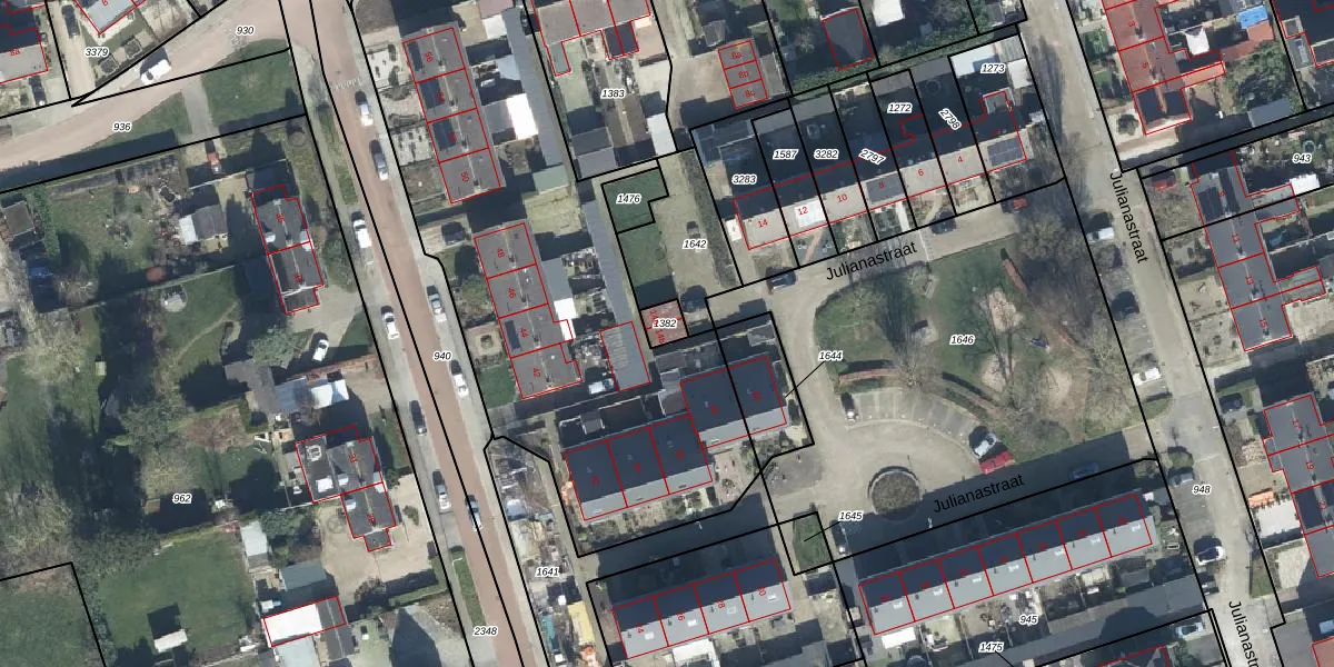 Julianastraat 14-b is gelegen op kadastraal perceel VBG02G1382. Deze kadastrale aanduiding is uniek en wordt gebruikt door het Kadaster om eigendomsrechten en andere zakelijke rechten vast te leggen. Het perceel maakt onderdeel uit van de kadastrale gemeente Valburg.