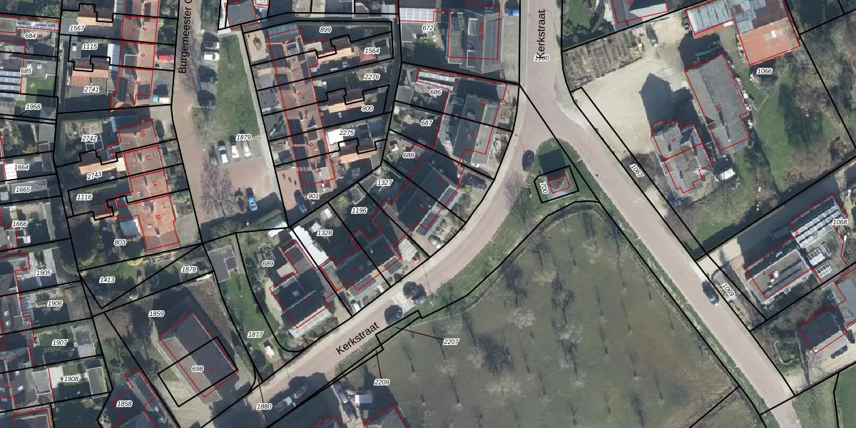 Kerkstraat 13 is gelegen op kadastraal perceel VBG02G1327. Deze kadastrale aanduiding is uniek en wordt gebruikt door het Kadaster om eigendomsrechten en andere zakelijke rechten vast te leggen. Het perceel maakt onderdeel uit van de kadastrale gemeente Valburg.