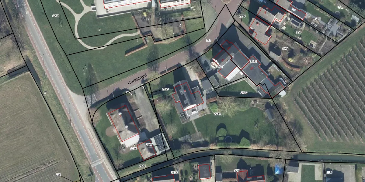 Het perceel waarop Kerkstraat 6 staat heeft een oppervlakte van 2442 m². Dit is een zeer groot perceel. De perceeloppervlakte wordt geregistreerd door het Kadaster. Gedetailleerde informatie over de maten van dit perceel kunt u vinden in het rapport Kadastrale kaart met maatvoering van Kerkstraat 6.