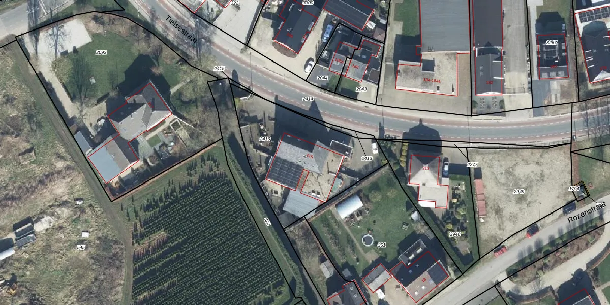 Tielsestraat 215 is gelegen op kadastraal perceel VBG02F2416. Deze kadastrale aanduiding is uniek en wordt gebruikt door het Kadaster om eigendomsrechten en andere zakelijke rechten vast te leggen. Het perceel maakt onderdeel uit van de kadastrale gemeente Valburg.