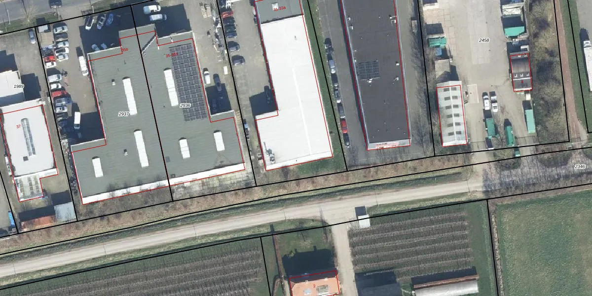 Het adres is gelegen op perceel 1987 in de sectie F en de kadastrale gemeente Valburg. De kadastrale aanduiding is aldus VBG02-F-1987. Het perceel is kleiner dan gemiddeld in Valburg. Het perceel is 2125 m² groot, terwijl het gemiddelde ligt op 5005,83 m². De grootste perceeloppervlakte in de kadastrale gemeente is 60,5 ha. De kleinste oppervlakte bedraagt 0 m². Er zijn 6 adressen aanwezig op het perceel. De huidige grenzen van het perceel zijn digitaal in de Basisregistratie Kadaster (BRK) geregistreerd op 06-12-2006.
