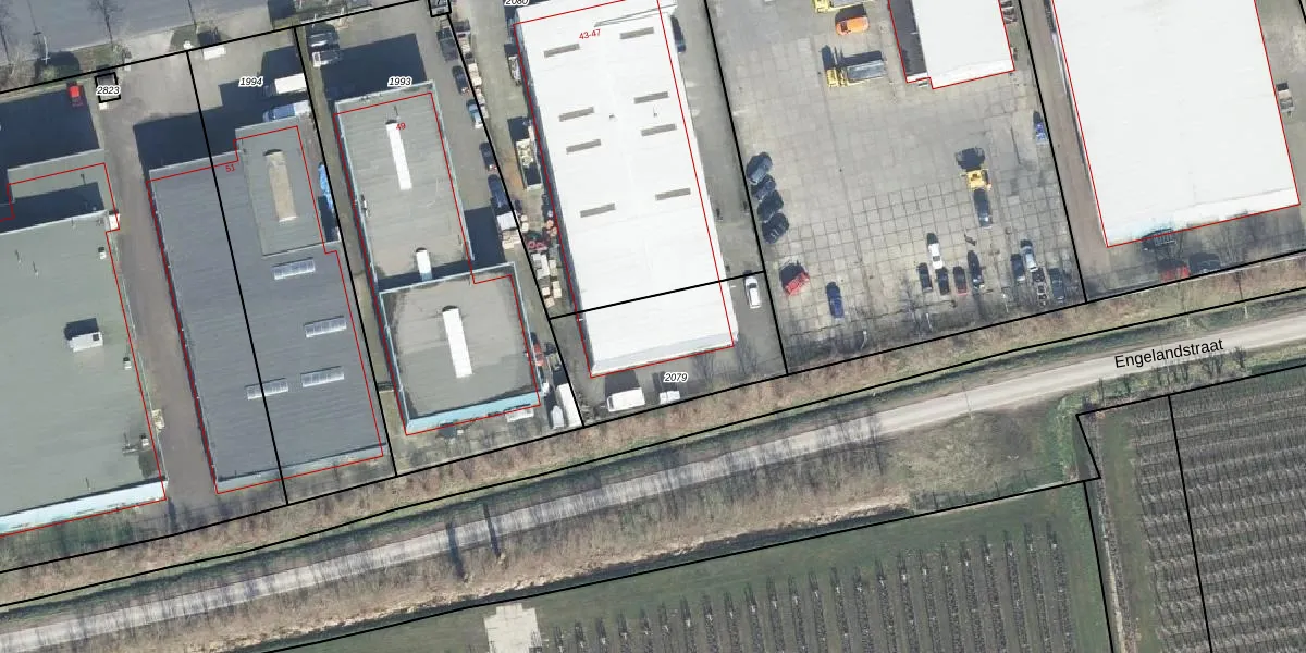 Het adres is gelegen op perceel 2079 in de sectie F en de kadastrale gemeente Valburg. De kadastrale aanduiding is aldus VBG02-F-2079. Het perceel is kleiner dan gemiddeld in Valburg. Het perceel is 555 m² groot, terwijl het gemiddelde ligt op 5005,83 m². De grootste perceeloppervlakte in de kadastrale gemeente is 60,5 ha. De kleinste oppervlakte bedraagt 0 m². Dit is het enige adres dat aanwezig is op het perceel. In de Basisregistratie Kadaster (BRK) werden de grenzen van het perceel geregistreerd op 06-12-2006.
