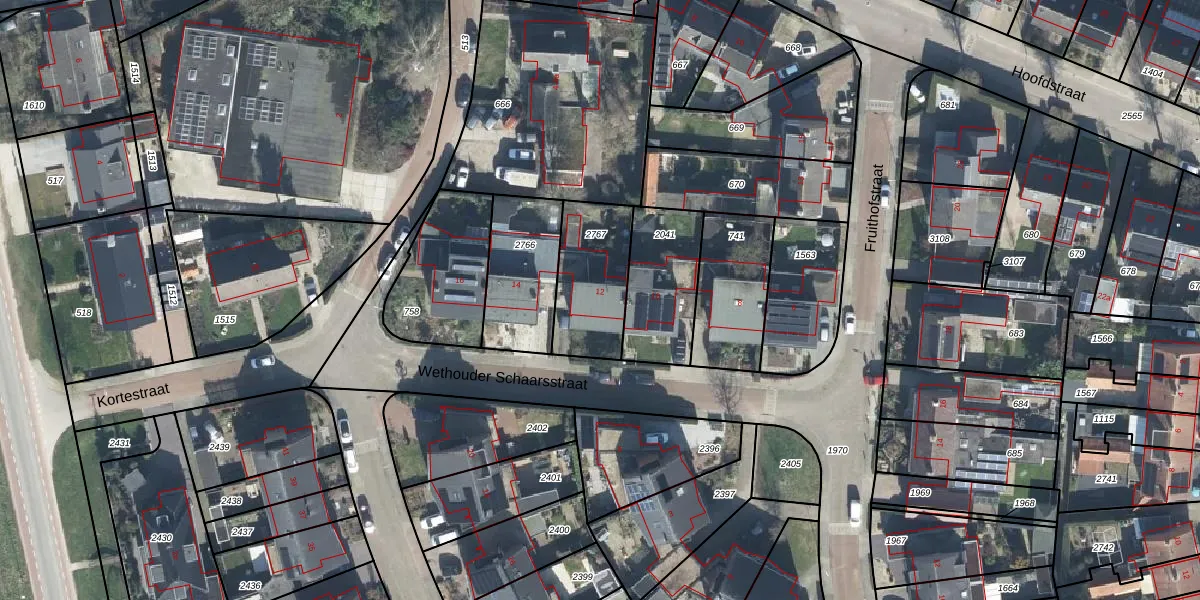Wethouder Schaarsstraat 12 is gelegen op kadastraal perceel VBG02G2767. Deze kadastrale aanduiding is uniek en wordt gebruikt door het Kadaster om eigendomsrechten en andere zakelijke rechten vast te leggen. Het perceel maakt onderdeel uit van de kadastrale gemeente Valburg.