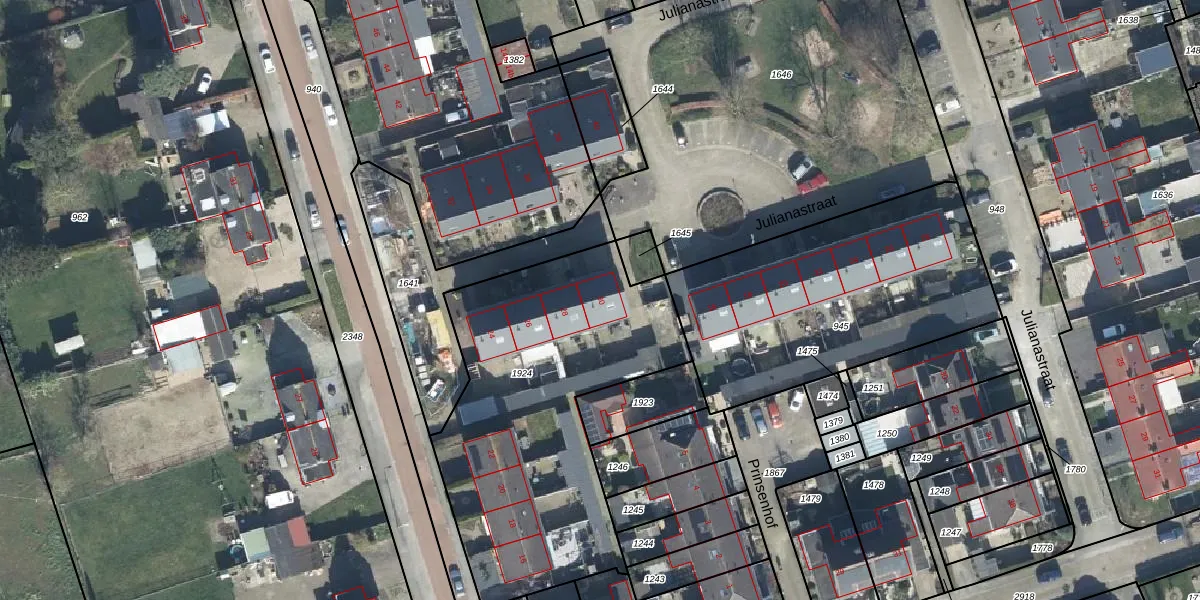 Het perceel waarop Wilhelminastraat 30 staat heeft een oppervlakte van 1555 m². Dit is een zeer groot perceel. De perceeloppervlakte wordt geregistreerd door het Kadaster. Gedetailleerde informatie over de maten van dit perceel kunt u vinden in het rapport Kadastrale kaart met maatvoering van Wilhelminastraat 30.