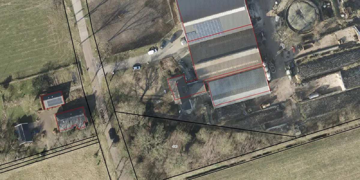 Het perceel waarop Oldend 1-a staat heeft een oppervlakte van 5,7 ha. Dit is een zeer groot perceel. De perceeloppervlakte wordt geregistreerd door het Kadaster. Gedetailleerde informatie over de maten van dit perceel kunt u vinden in het rapport Kadastrale kaart met maatvoering van Oldend 1-a.