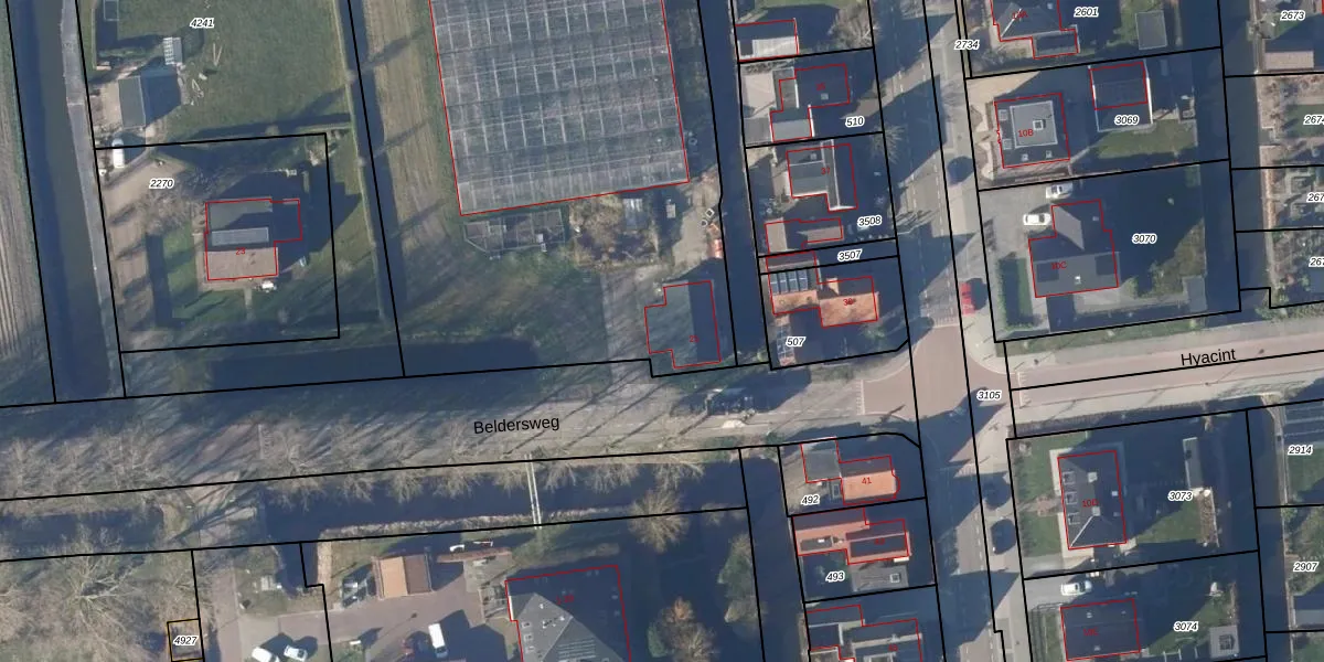 Gebruik de zoekbalk of klik op een perceel voor informatie over de adressen binnen dit perceel.