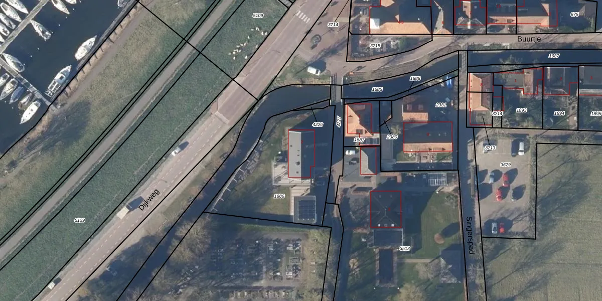 Het adres is gelegen op perceel 1886 in de sectie K en de kadastrale gemeente Andijk. De kadastrale aanduiding is aldus ADK00-K-1886. Het perceel is kleiner dan gemiddeld in Andijk. Het perceel is 1054 m² groot, terwijl het gemiddelde ligt op 8680,6 m². De grootste perceeloppervlakte in de kadastrale gemeente is 23,96 km². De kleinste oppervlakte bedraagt 0 m². Op het perceel bevinden zich geen andere adressen. In de Basisregistratie Kadaster (BRK) werden de grenzen van het perceel geregistreerd op 15-01-2013.