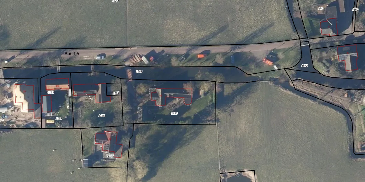Het perceel waarop Buurtje 32 staat heeft een oppervlakte van 1220 m². Dit is een zeer groot perceel. De perceeloppervlakte wordt geregistreerd door het Kadaster. Gedetailleerde informatie over de maten van dit perceel kunt u vinden in het rapport Kadastrale kaart met maatvoering van Buurtje 32.