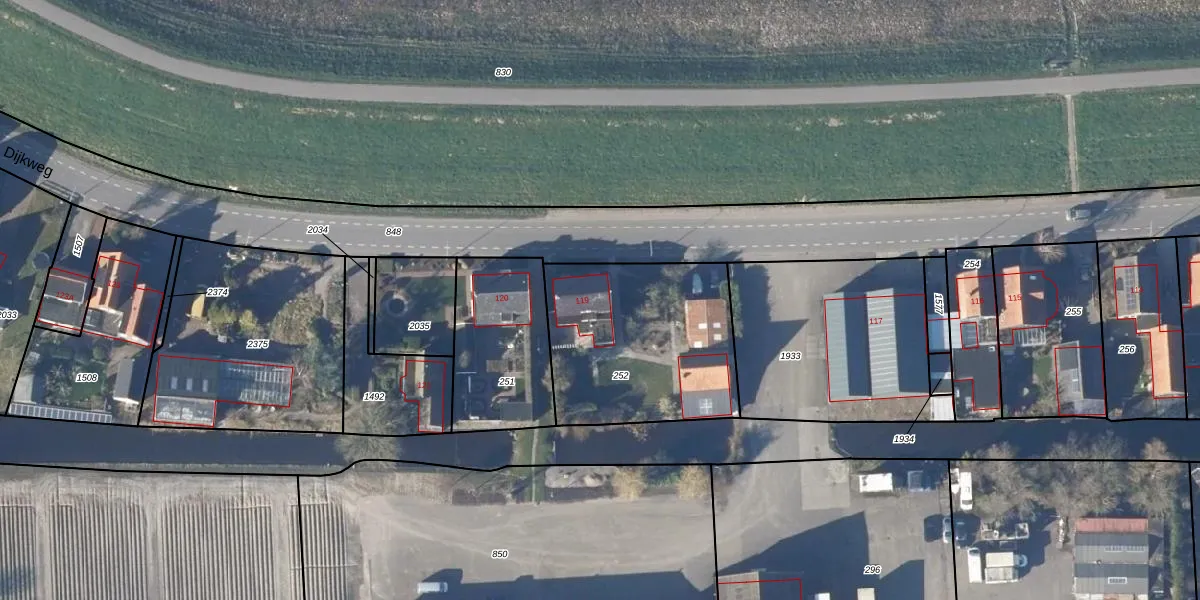 Dijkweg 119 is gelegen op kadastraal perceel ADK00L252. Deze kadastrale aanduiding is uniek en wordt gebruikt door het Kadaster om eigendomsrechten en andere zakelijke rechten vast te leggen. Het perceel maakt onderdeel uit van de kadastrale gemeente Andijk.